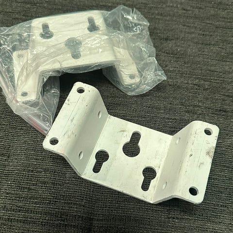 Kuvan valkoiset T-raudat Genelec-kaiuttimien ja telineiden välille.. Ei kaiuttimen puolen ruuveja (M6) mukaan.