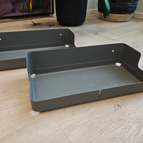 Ihana Iittalan Aitio sarjan metallinen laatikko, jota voi käyttää moneen tarkoitukseen. Seinäpidikkeessä ruostumaa, mutta se ei näy laatikon takaa. Laatikon sisällä hieman saumassa ruostumaa, ei näy käytössä. Erittäin siisti edelleen!