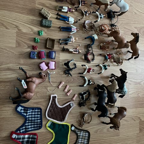 Meiltä löytyy myös muuta krääsää, hahmoja, talli, auto ja traileri ja vaikka mitä muuta.