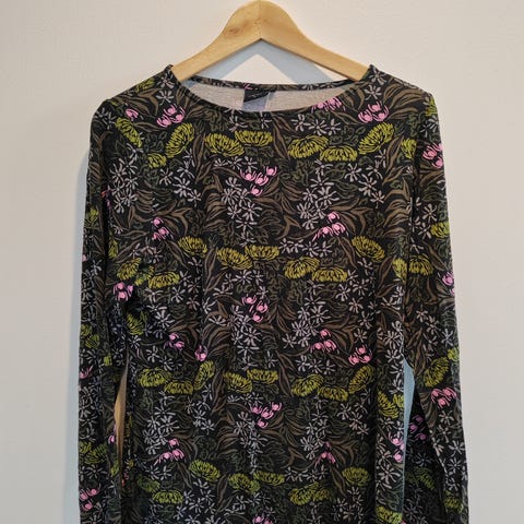 Nanso pitkähihainen pusero koko M ja kunto erinomainen. Mitat k-k 48 ja joustaa 63, pit 74, hiha 60. Materiaali 68% modaali, 30% lycocell, 4% elastaania.