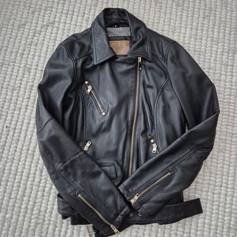 Oakwood -merkkinen musta nahkatakki. Kevyt ja mukavan pehmeä takki. Jäänyt vähäiselle käytölle viime aikoina.