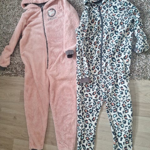 Sammakkoteemainen fleeceoloasu, koko 146/152. Huppu. Vetoketju haalarin edessä. Fleece litistynyt polvista ja takapuolesta, muuten ehjä ja siisti. Kissatalous