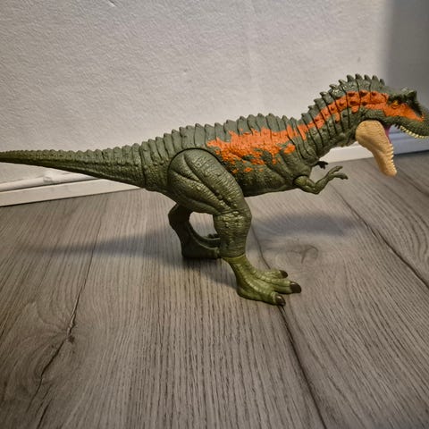 Two dinos, armor, weapon, shooting slime looking ammos, working condition. They were in eggs from zuru. Tails move the heads on them.