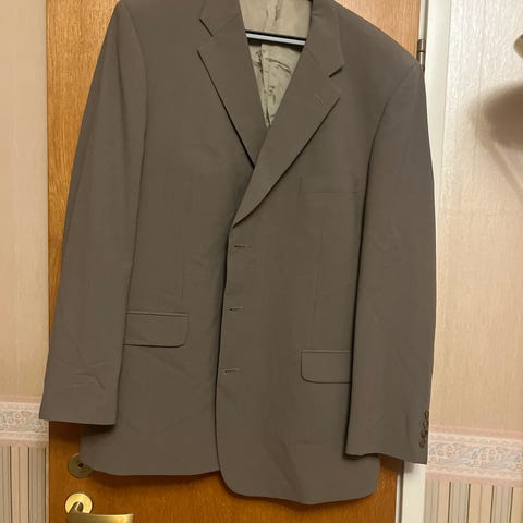 Ruskeabeessiraidallinen puvun takkia.55% pellava(linen-flax), 45% puuvillaa.
