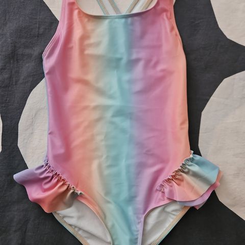 HM uimapuku koossa 122cm. Väri haalea pinkki/oranssi.