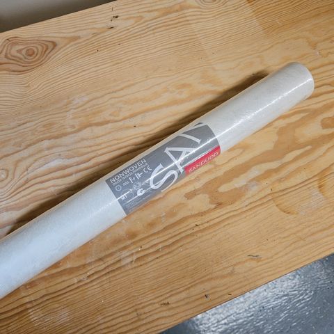 Rulla beigeä raitatapettia, non-woven kuitutapetti. Jos tarvitsee n 2 m seinänpätkää tapetoida...