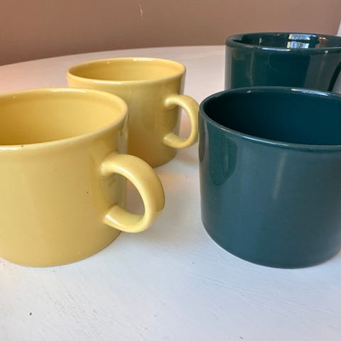Arabia Teema kahvimukit 2kpl. Vintage keltainen väri. 3dl. Uudenveroiset.