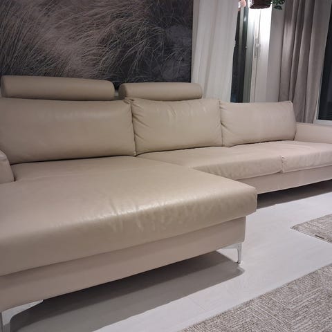 Erittäin hyväkuntoinen valkoinen nahkainen divaani sohva. Italialaista nahkaa. Sohvan saa helposti kahteen osaan kuljetusta varten. Hankittu vuonna 2021. Putsatty ja hoidettu asianmukaisilla puhdistus ja suoja aineilla. Syvyys 90 leveys 245 korkeus 88 dibävaaniosan syvyys/pituus 223. Sohvassa ei ole mitään vikaa/mikään ei ole rikki. Ainoastaan noemaalia kulumaa.