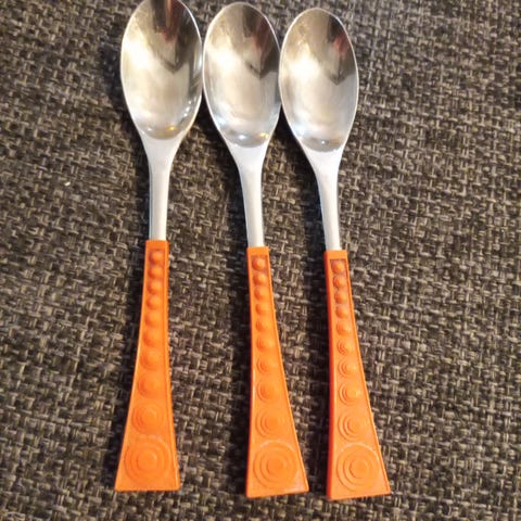 Erittäin hyväkuntoinen punainen pikkulusikka.