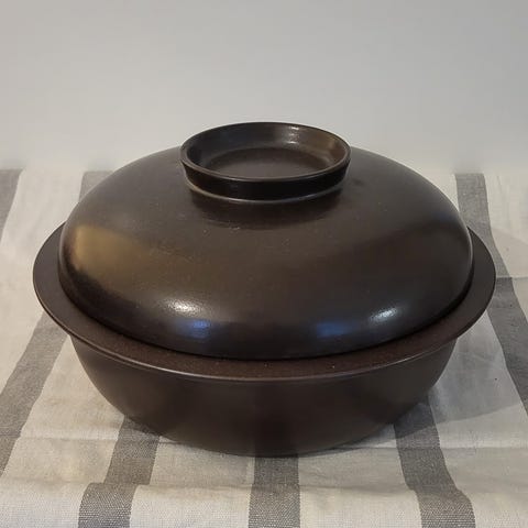 Arabian Liekki-pata, suunnittelija Ulla Procope. Padan halkaisija 22 cm, korkeus ilman kantta noin 11 cm. Pata on ehjä ja siisti.