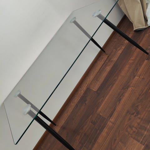 Lasinen ruokapöytä ja valkoiset tuolit. Yhden tuolin kulmassa pieni kuluma, kts. kuva. OVH n.200€ Myyn koska nämä eivät enää mahdu uuteen asuntooni :) Haku Toppilasta.