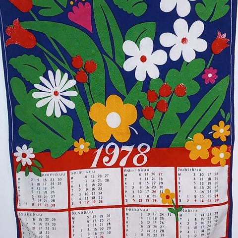 Siisti vanha kalenteripyyhe 1973