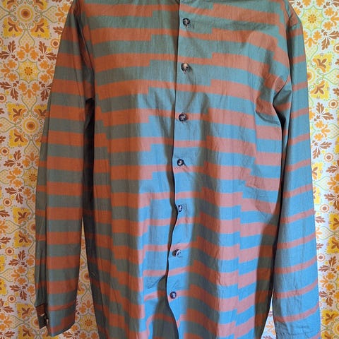 Klassikkopaita myyntiin, hyväkuntoinen, ainoastaan tuoteseloste leikattu pois. Materiaali lienee puuvillan ja elastaanin sekoitetta, on niin mukava ja miellyttävä, tästä tulee helposti lempparipaita. Tässä vielä kivat metalliset painonapit niin kuin Vuokon paidossakin.