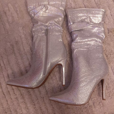 Hopeiset/harmaat glitteriset juhlakengät. Käytetty 2 kertaa. Ostettu uutena zazabellasta. Alkuperäinen laatikko ja siellä säilytetty koko ajan harsoihin käärittynä. Merkiltään QH lunhui.