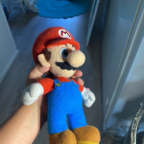 Iso pehmolu Mario vielä vapaana, Luigi on myyty. Saatu lahjaksi, mutta eivät tulleet käyttöön. 25e. Koko: 1m pitkä