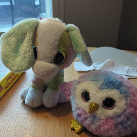 Pieni läjä kissapehmoleluja. Yksi oletettavasti squishmallows, mutta ei varmuutta kun lappu leikattu irti. Sillä selässä huomasin jotain pikkutahroja, puhdistamisen jätän ostajalle.
