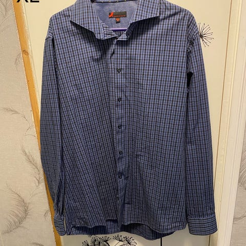 Vähän käytetty, ehjä kauluspaita. Vähän pölyä ja karvoja muttei muuta moitittavaa.