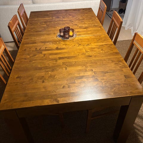 Decotique yksinkertainen kaunis jatkettava ruokapöytä. 180 cm pitkä + 40 cm (jatkopala)