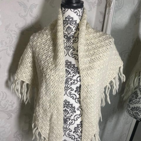 Nätti pinkin värinen poncho tai viitta miten kukakin haluaa sitä kutsua. Poolo-kaulus ja helmassa pörrölangasta tehty koristelu joka tekee persoonallisen vaikutelman. Pituus edestä helman pisimpään kohtaan 91 cm.