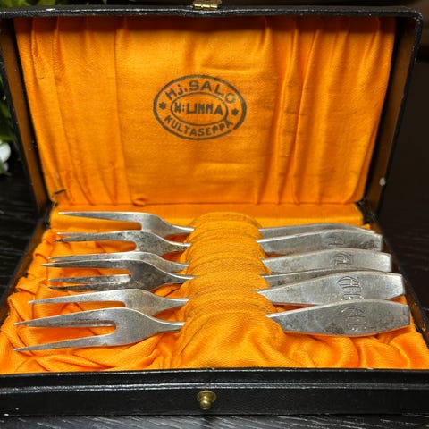 Vintage hedelmäveitsisarja uushopeaa