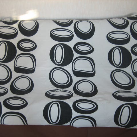 Siniset verhot. Puuvilla, polyesteriä.