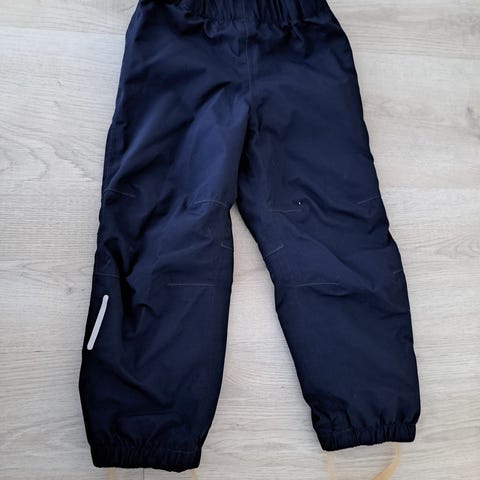 Reima navy blue outdoor pants size 98 in good condition. Thin lining. Signs of use in the knees as shown in the pictures. Adjustable straps. Zipper works well. Washed without perfume.