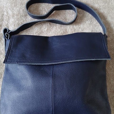 Nahkainen naisten laukku mustana. Laukussa on olkahihna, joka on säädettävissä. Sisäpuolella on vetoketjutasku ja tilaa pientavaroille. Laukun muoto on kaareva, ja se on valmistettu nahasta.