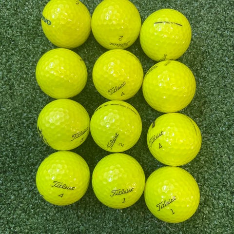 titleist prov1 ja prov1x palloja 12kpl setti. palloissa kulumaa joka voi vaikuttaa peliin. palloissa voi olla tussin jälkiä. isommatkin erät onnistuvat!