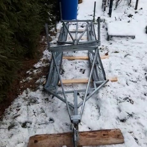 Moottorikelkan parireki ja pikkutavaroiden iso kuljetuslaatikko