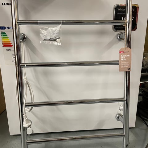 Tarpeettomana asentamaton pyyhekuivain eli rättipatteri kylpyhuoneeseen. Voidaan asentaa vasen tai oikeakätisesti. Pistotulppaliitäntä, eli ei vaadi sähkötöitä.
