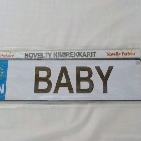 Käyttämätön puinen kyltti esimerkiksi ultrakuvalle. Kuvassa näyttää että siinä olisi jotain mustaa keskellä mutta se. On vain muovissa. Vaihtoehtoisesti voi täyttää vauvan tietoja toiselle puolelle. Jalat kuuluu laittaa V-mallisesti.