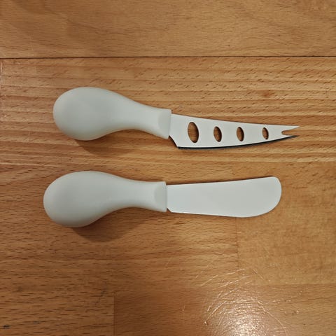 Siistikuntoiset tarjoiluveisti sekä haarukka.