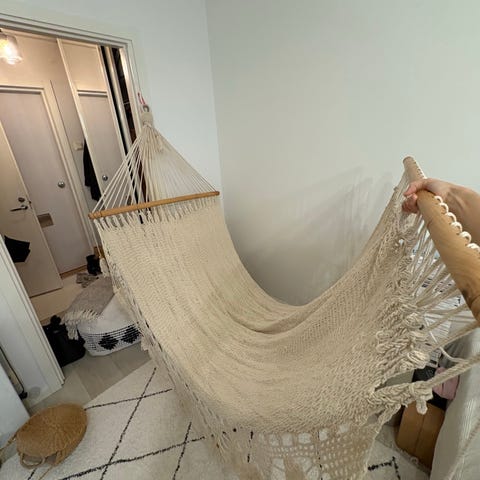 Meksikosta ostettu oranssi riippumatto. Käytännössä käyttämätön. Materiaali puuvillaa ja koko on iso.