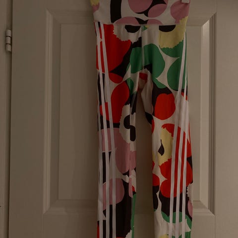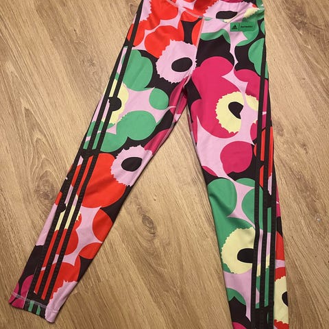 Myydään vähän käytetyt marimekko x Adidas unikkotrikoot. Koko S. Lahkeet 3/4 (ainakin näin 169cm pitkälle). Lyhyemmälle ihmiselle varmaan ihan täyspitkät trikoot.
