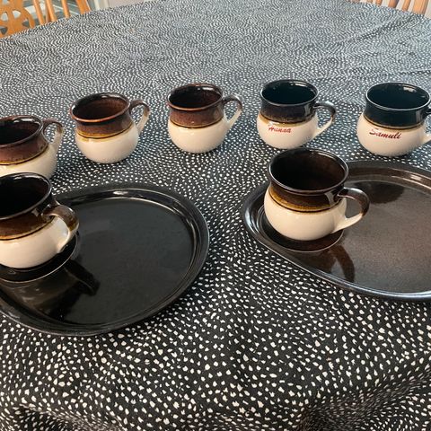 Kermansavi omenapuput kotimainen lasten astiasto 2 osaa, sisältää kupin ja mukin, joissa on värikäs pupuaiheinen kuvitus.