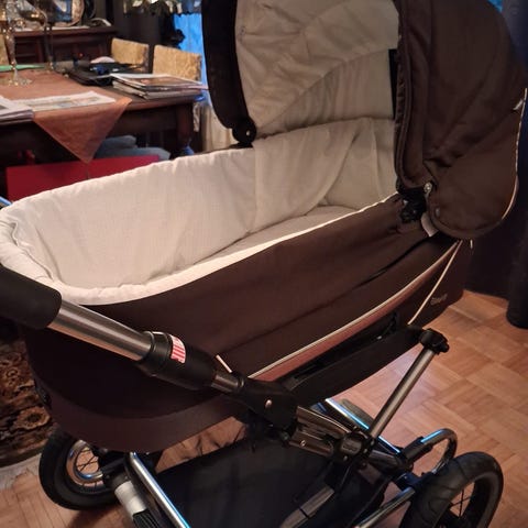 Tilava vaunukoppa, jossa on hyvät pehmusteet, hyttys- ja aurinkosuoja. Pohjassa säädettävät ilma-aukot ja päätyosan saa nostettua. Voi käyttää lisäksi matkasänkynä ja koppaa voi myös heijata maassa.