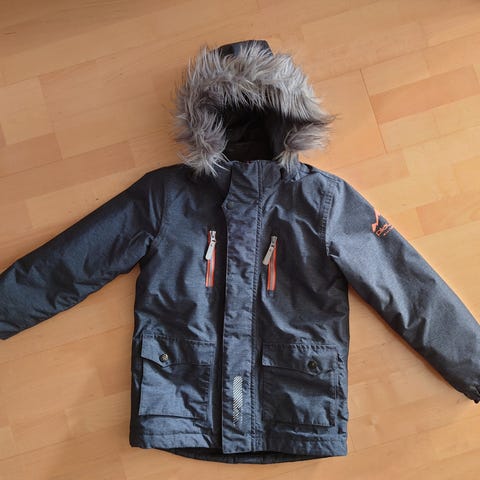 Hyvä kuntoinen toppatakki, hihoissa ja vyötäröllä lumilukot. Koko 134cm.