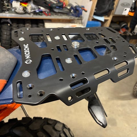 Mukana kaikki laukkuraudat sivu ja ylälaukulle sekä ylälaukun erillinen metallinen kiinnityslevy. Lukot 3kpl / sivulaukku ja ylälaukussa 2kpl