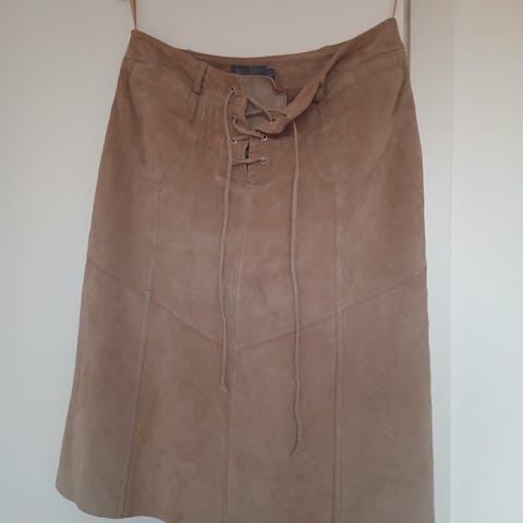 Friendtex ruskea hame, naisten koko 46. Valmistettu 100 % nahasta. Hameessa on etutaskut, joissa on napit. Sopii erilaisiin asukokonaisuuksiin ja tilaisuuksiin. Hame on hyväkuntoinen ja erittäin tyylikäs.