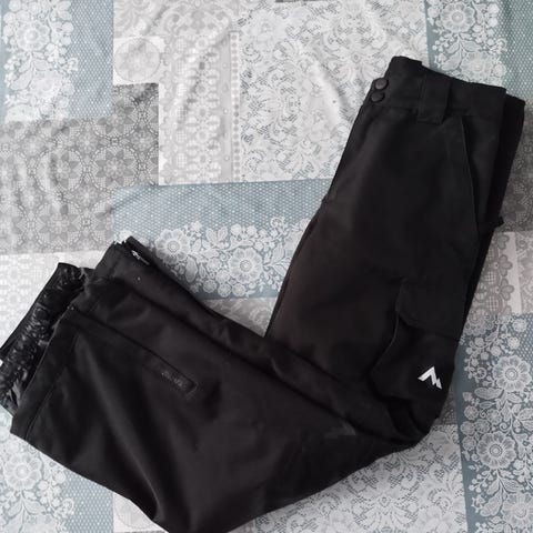 Ei henkseleitä mutta vyötäröstä voi kiristää. Taskut toimii ja 10.000 aquabase! Nouto!