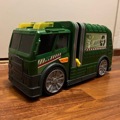 Tämä hauska roska-auto haukkailee napista painamalla tielleen tulevia roskia/leluja. Äänet ja valot toimii. Nouto Kauklahti Espoo.