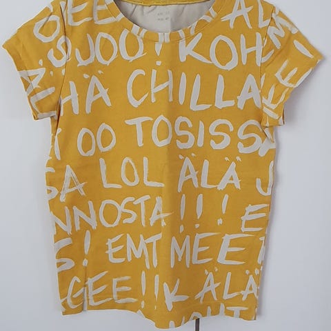 PaaPiin laadukkaasta trikoosta omalle lapselle siististi ommeltu t-paita. Koko vastaa 122/128. Siistissä käytetyssä kunnossa.