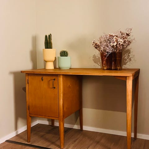 Myydään reilun kokoinen ja vankka tekoinen 1960-luvun kirjoituspöytä.