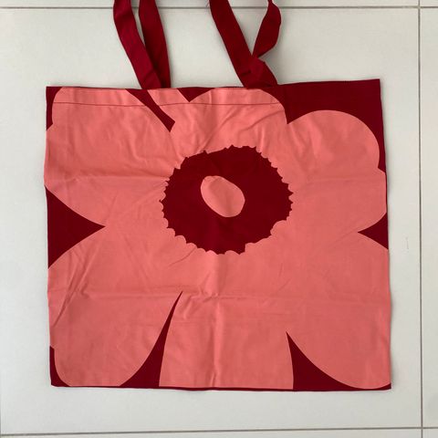 Marimekko kangaskassi, valmistettu 100 % kierrätetystä puuvillasta. Väri luonnonvalkoinen pinkeillä painatuksilla. Unisex-malli, sopii monenlaiseen käyttöön ja kantamiseen.