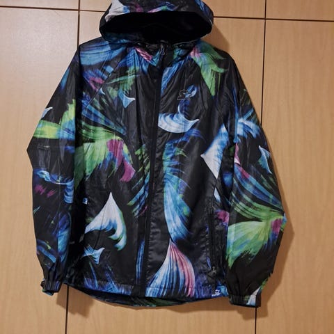 Hupullinen, ohut ja kevyt tuulitakki. Edessä vetoketjulliset taskut.