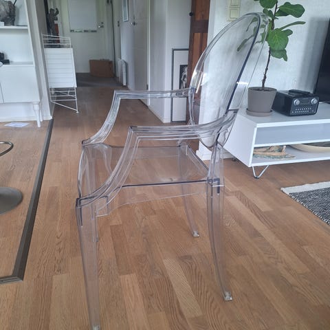 Vähäisellä käytöllä ollut harmaa Kartell Masters tuoli. Yleisilme siisti mutta joitain jälkiä löytyy, näistä kuvat.