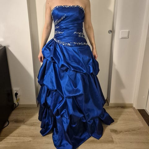 Kaunis vanhojentanssimekko. yltää lattiaan asti. saattaa joutua lyhentämään. täydellinen vanhojentansseihin! tälläistä et tule näkemään kenelläkään muulla! ei käytetty kertaakaan, mutta laput leikattu pois. haku onnistuu helsingistä tai postitus mahdollinen.