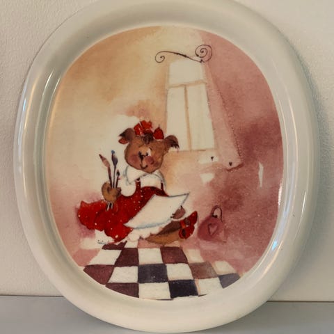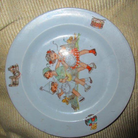Arabian Veikka lasten astiaston muki ja lautanen kruunuleima design by Minna Immonen