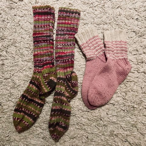 Myydään kahdet käsin kudotut villasukat kokoa 32-34. Käytetty, mutta ehjät.