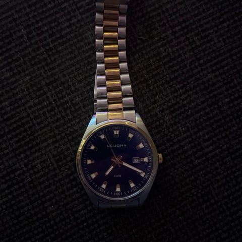 Leijona Miesten rannekello teräsrannekkeella ja hopeanvärisellä kellotaululla